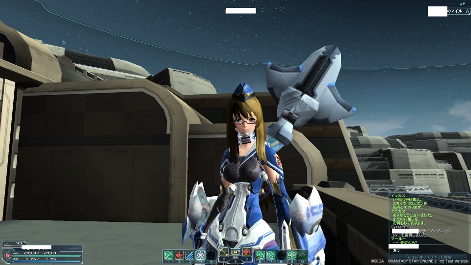 「画像は『PHANTASY STAR ONLINE 2』α2テストにおいて撮影された実機画像です。