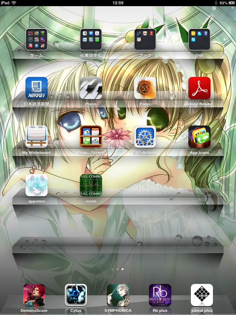 iOSでもアイコンをもにょったり棚っぽいカンジにしたりはできますがウィジェット表示などホームの拡張性はAndroidに劣っているかもしれませんがその分シンプルと考えることもできますね